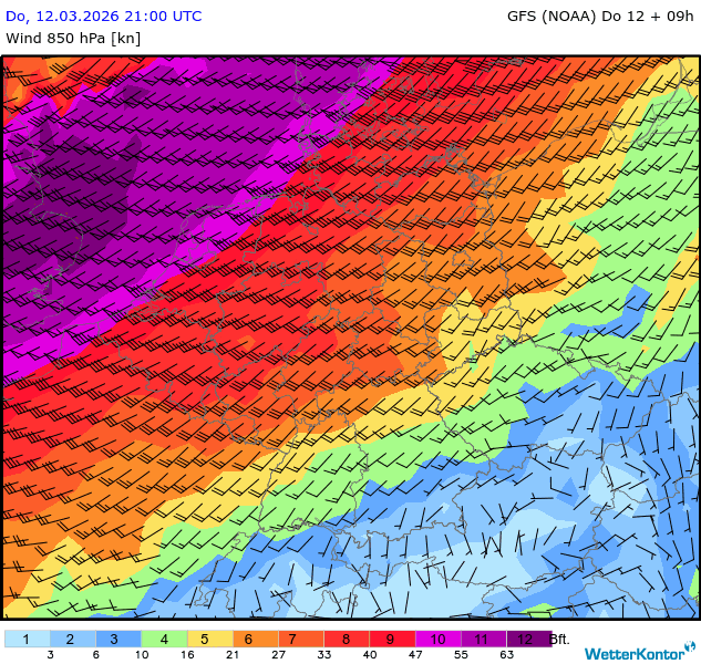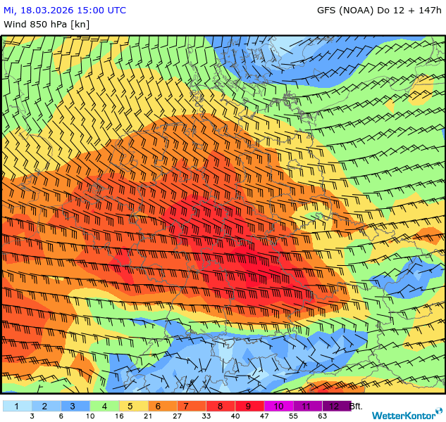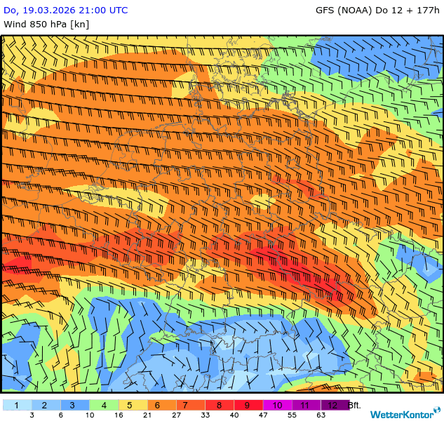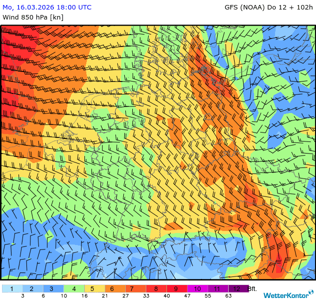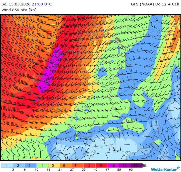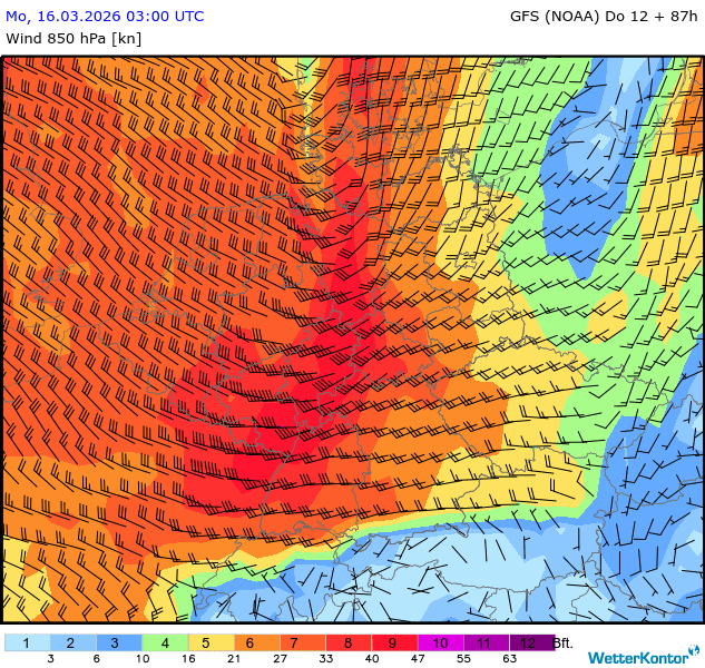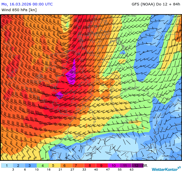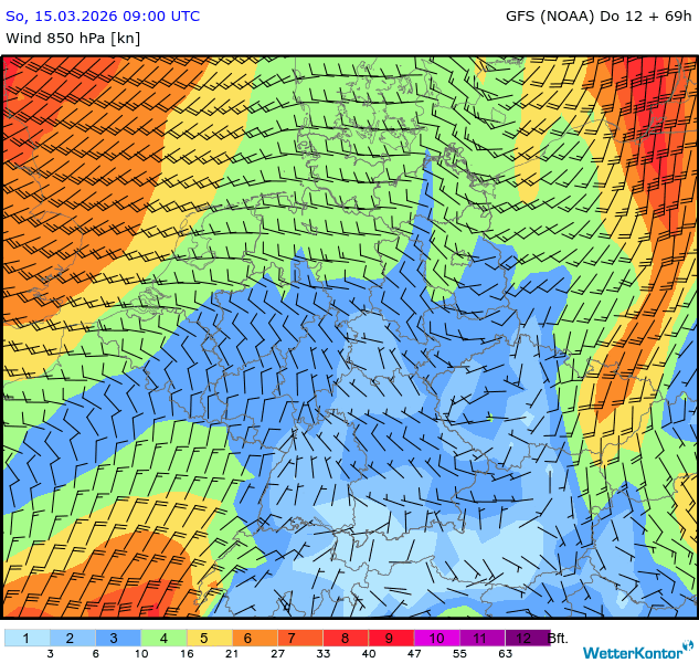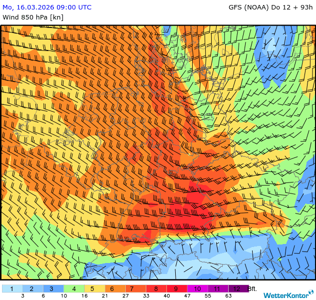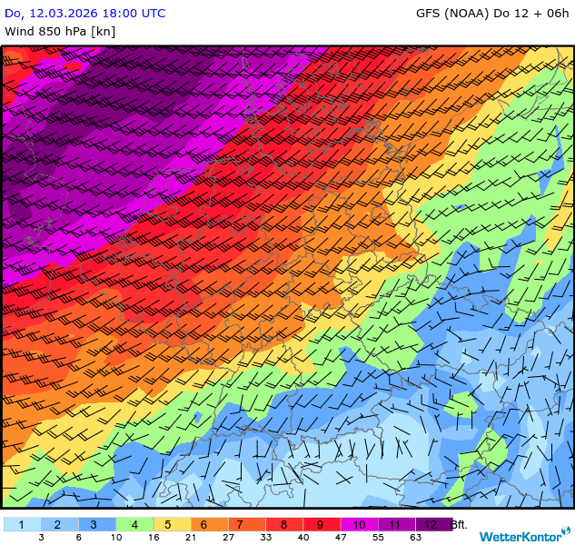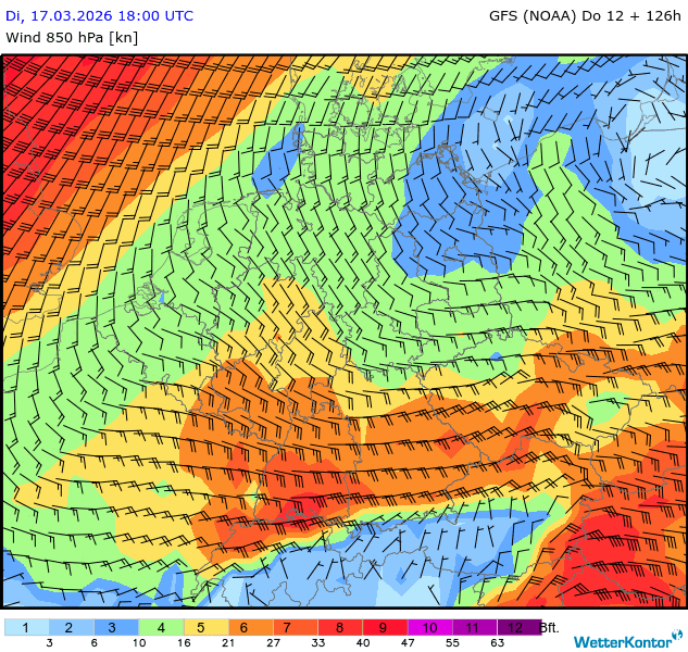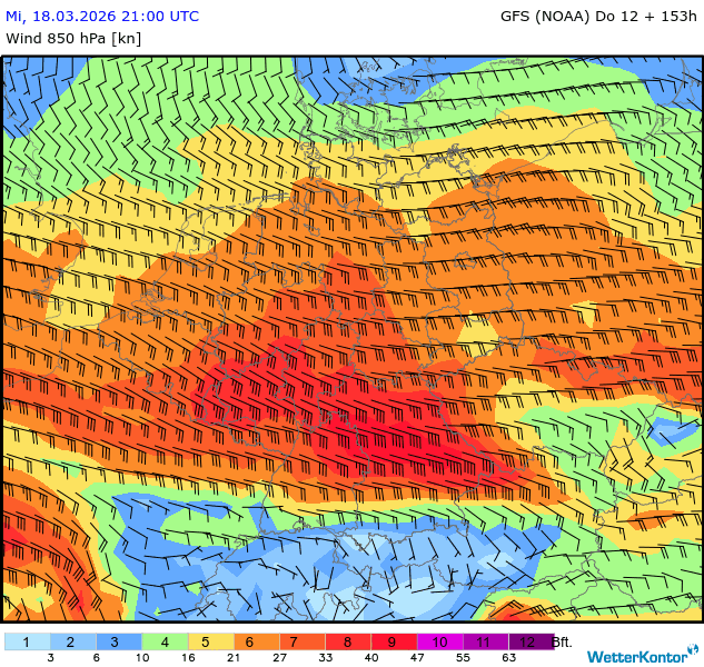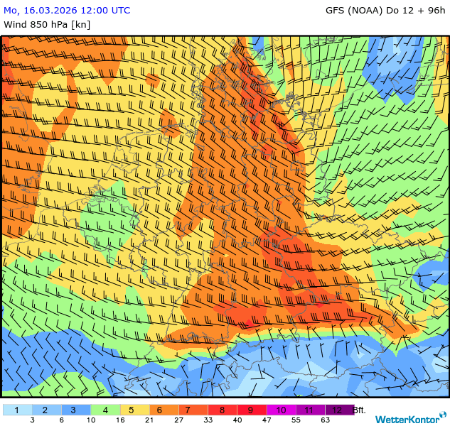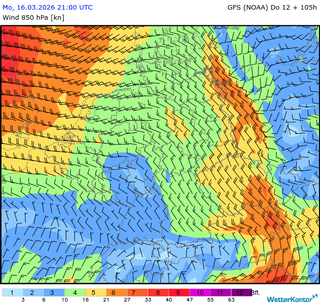 Wind 850 hPa Deutschland
