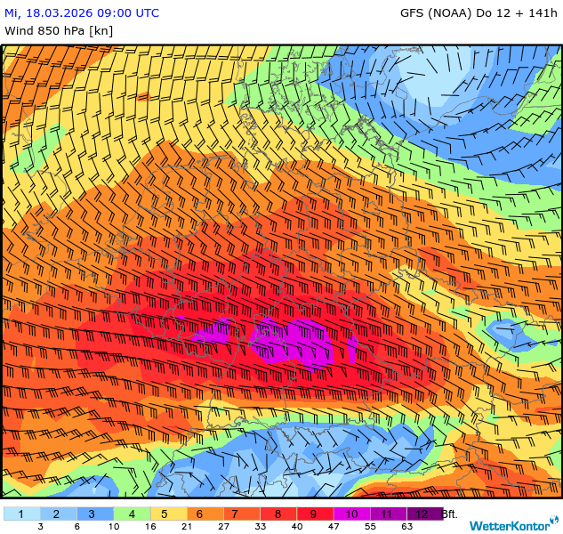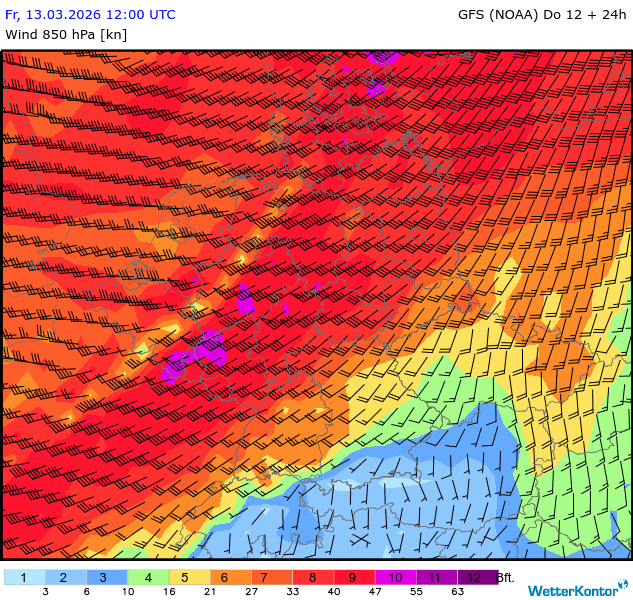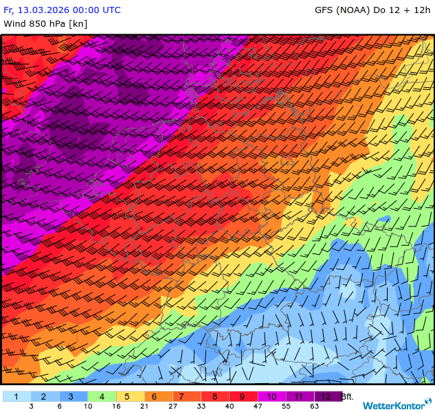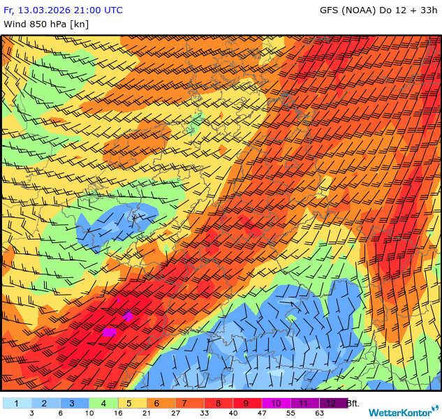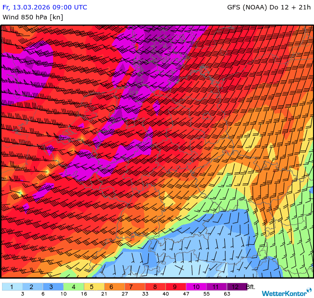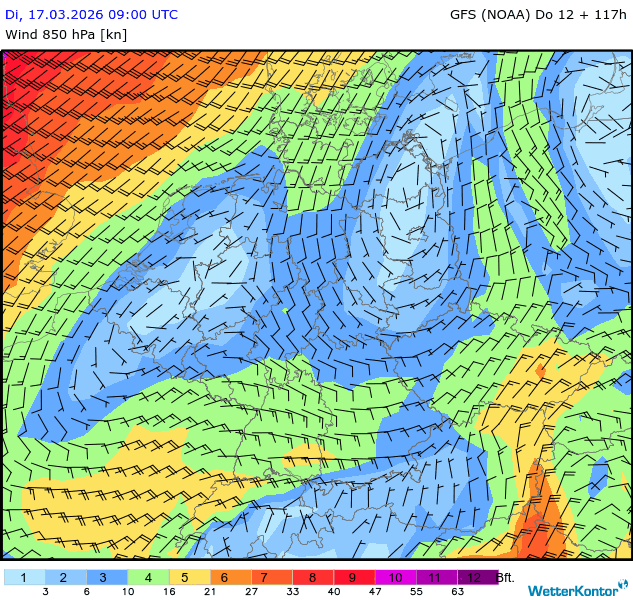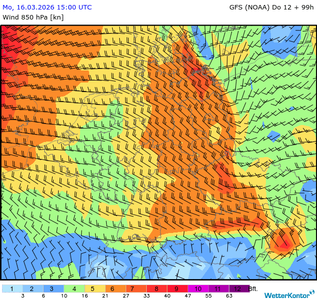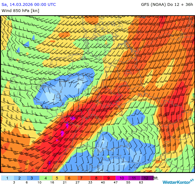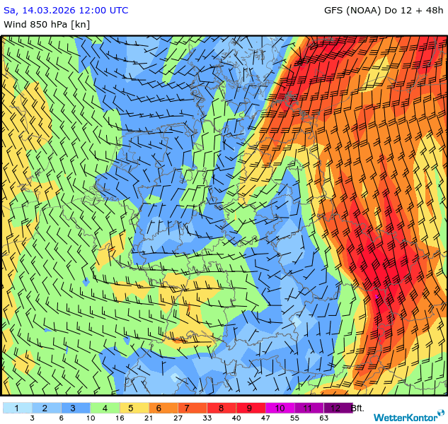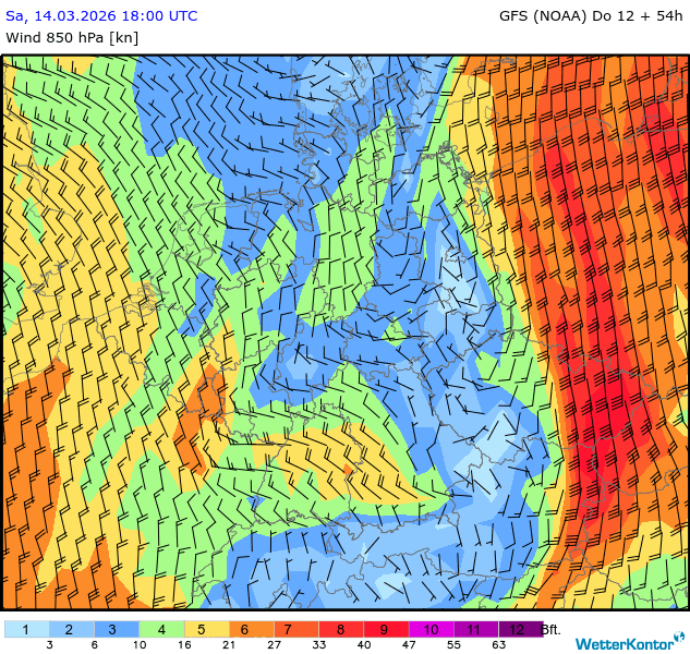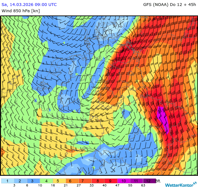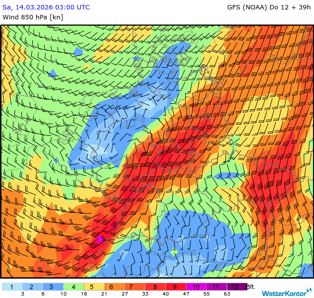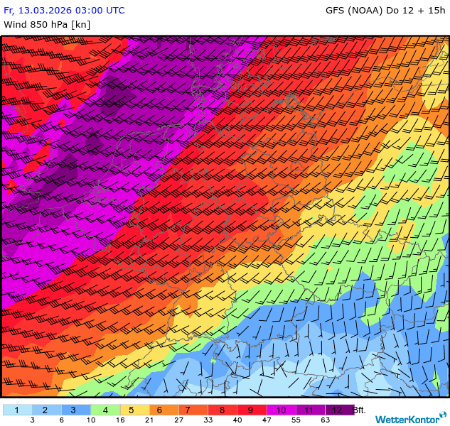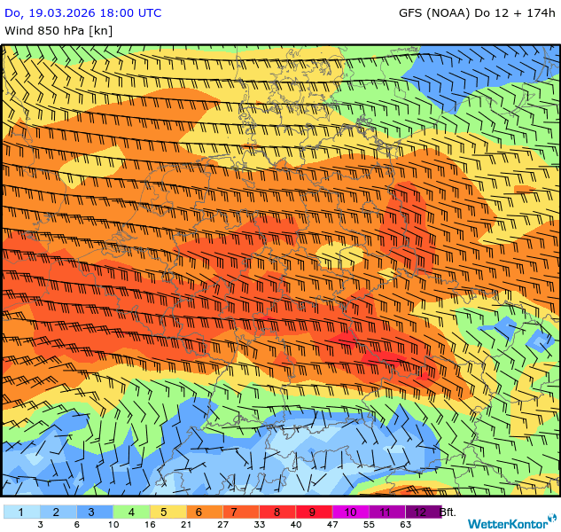 Wind 850 hPa Deutschland