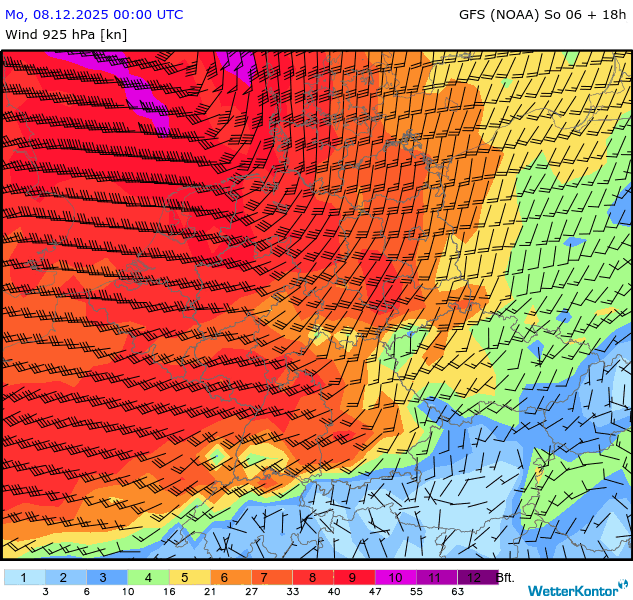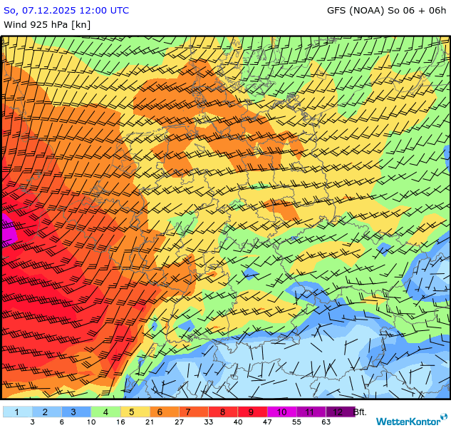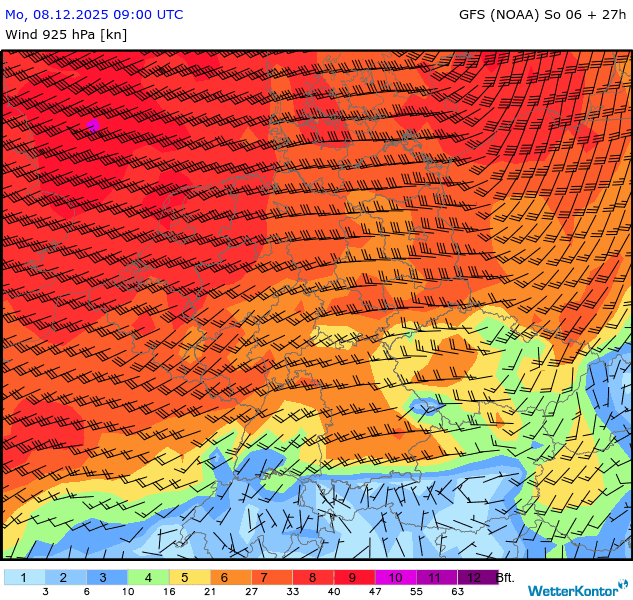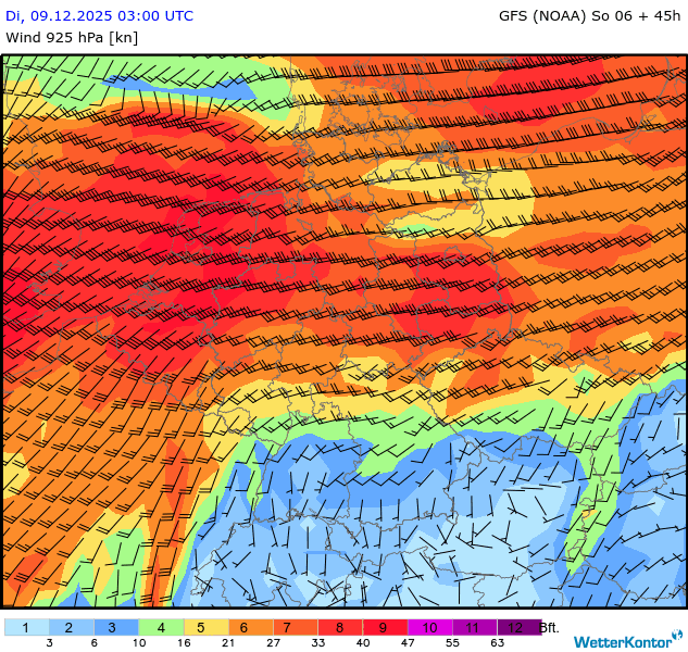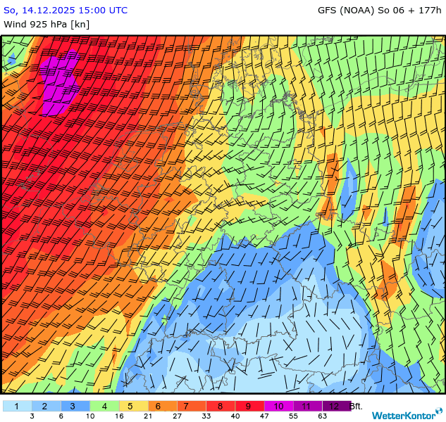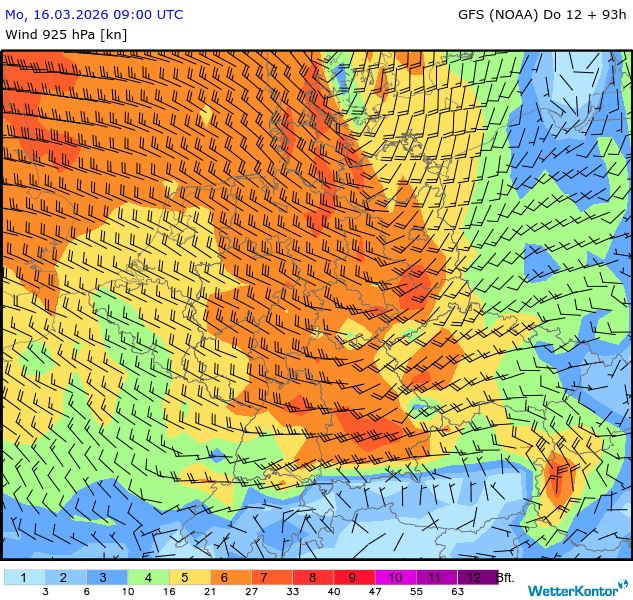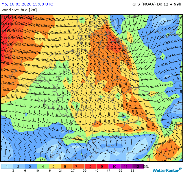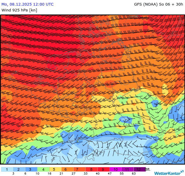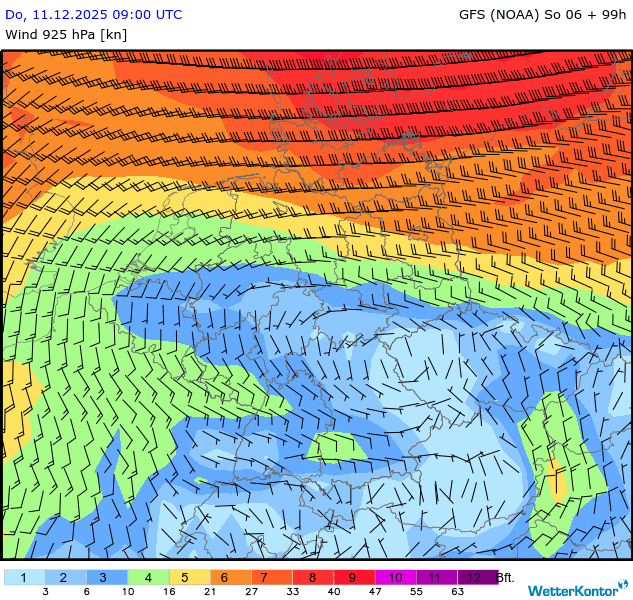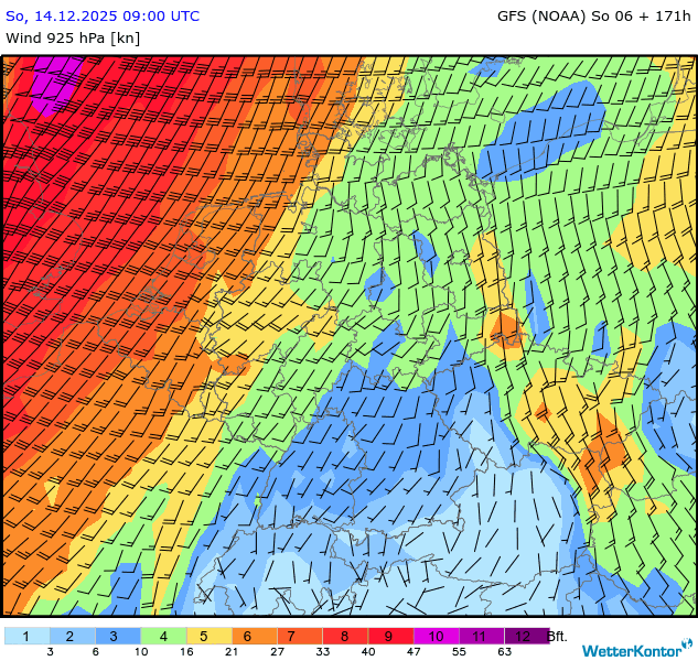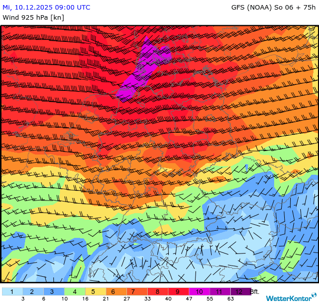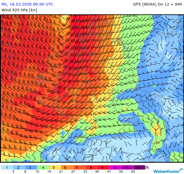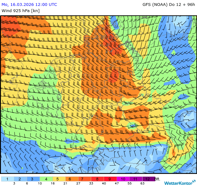 Wind 925 hPa Deutschland