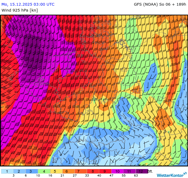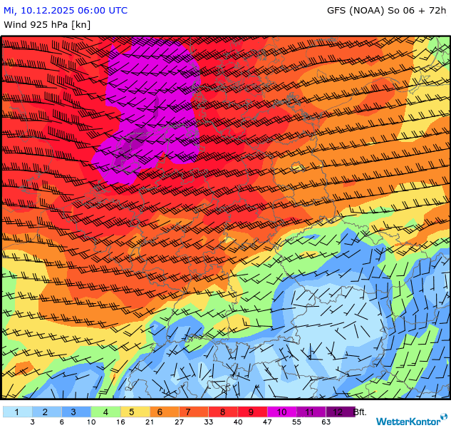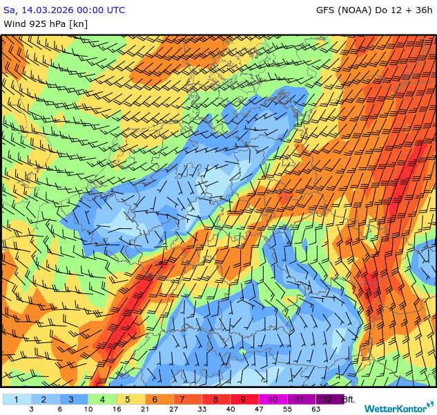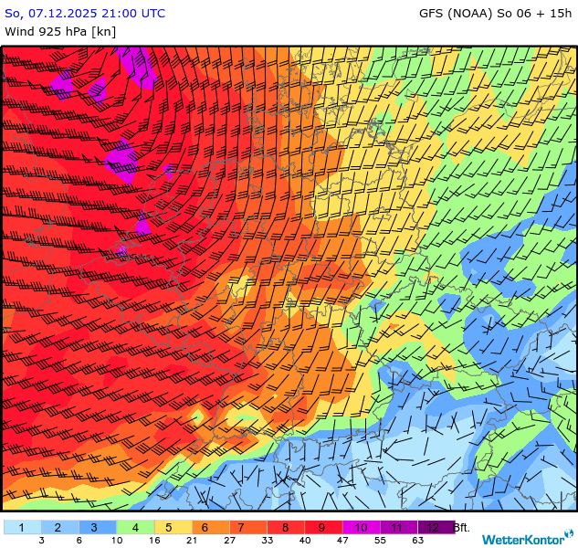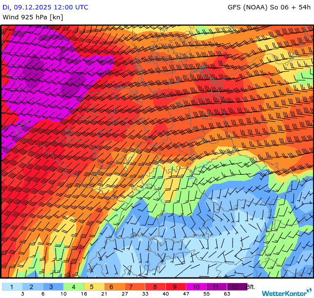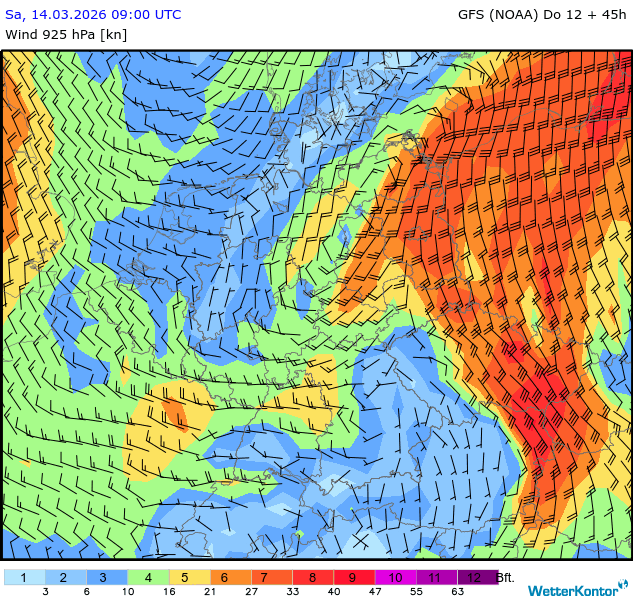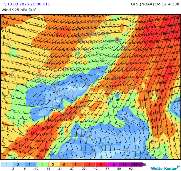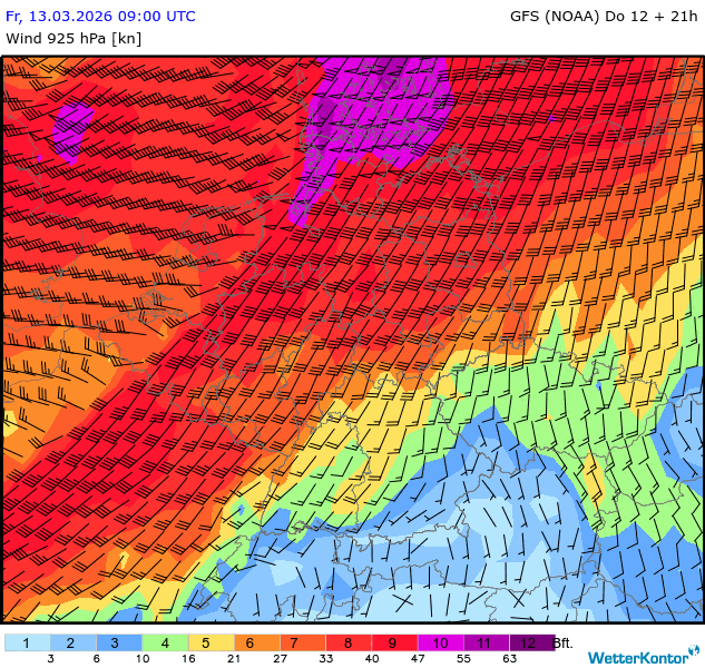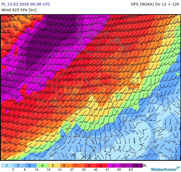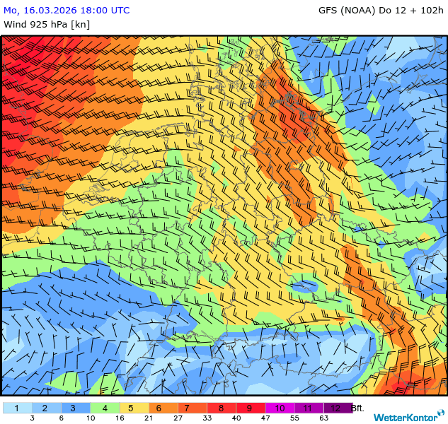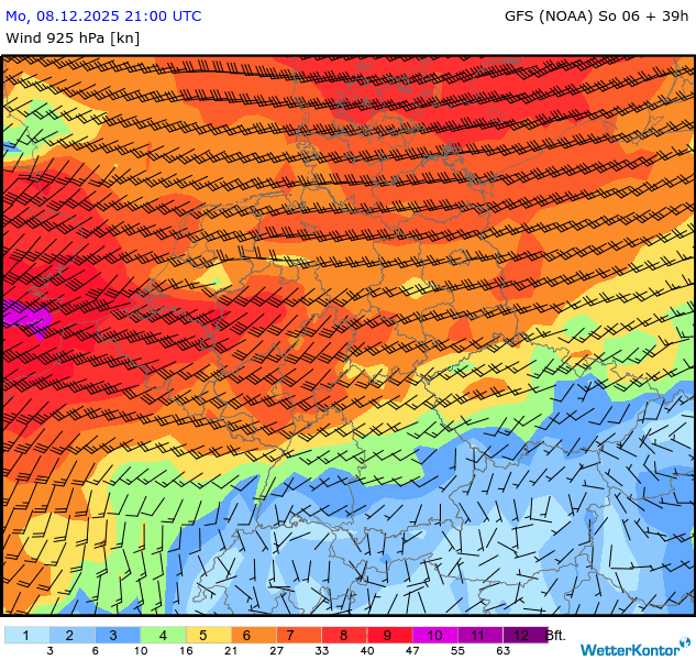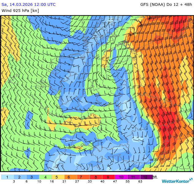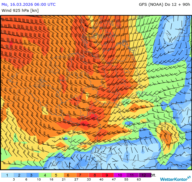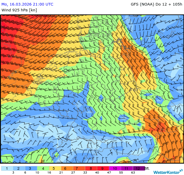 Wind 925 hPa Deutschland